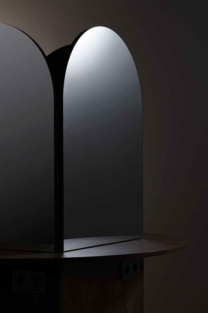 Quadruple styling unit with a futuristic design. Its central island shape allows for four workstations and is the center of attention in any salon.