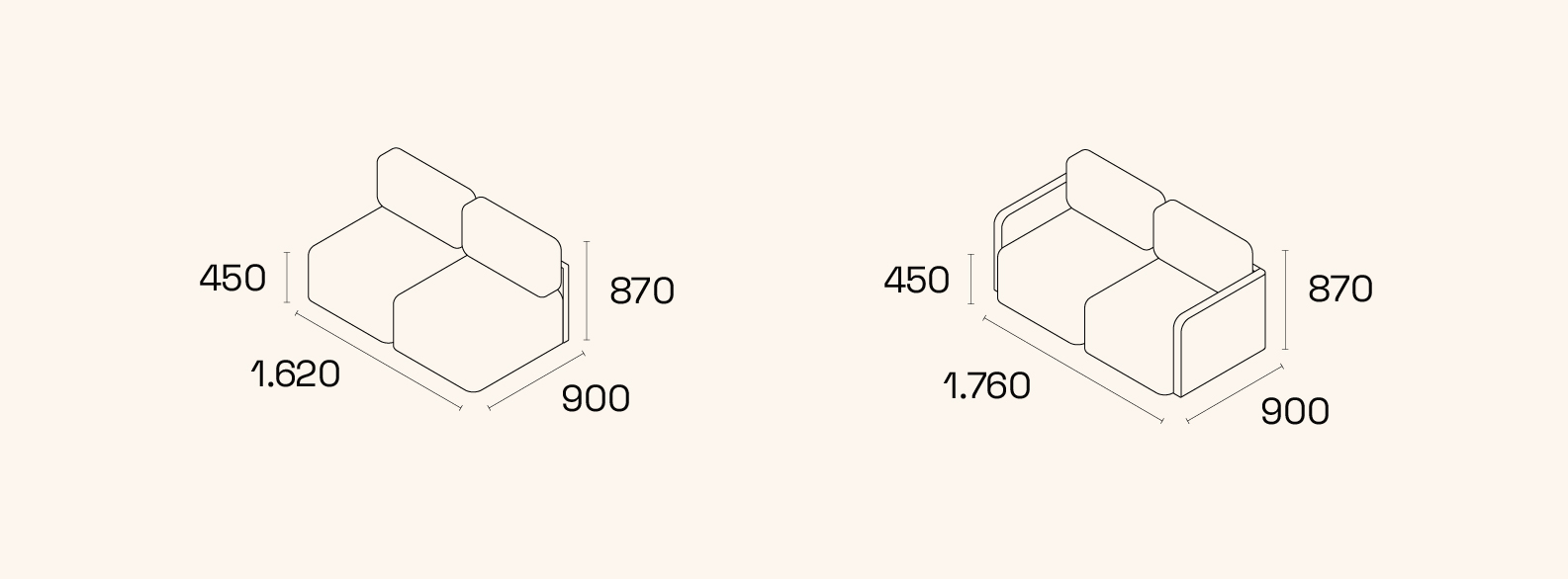 Two-seater sofa from the Bux modular range. It offers deep and plush seating, the perfect base for a waiting area that prioritizes rest and personalization.