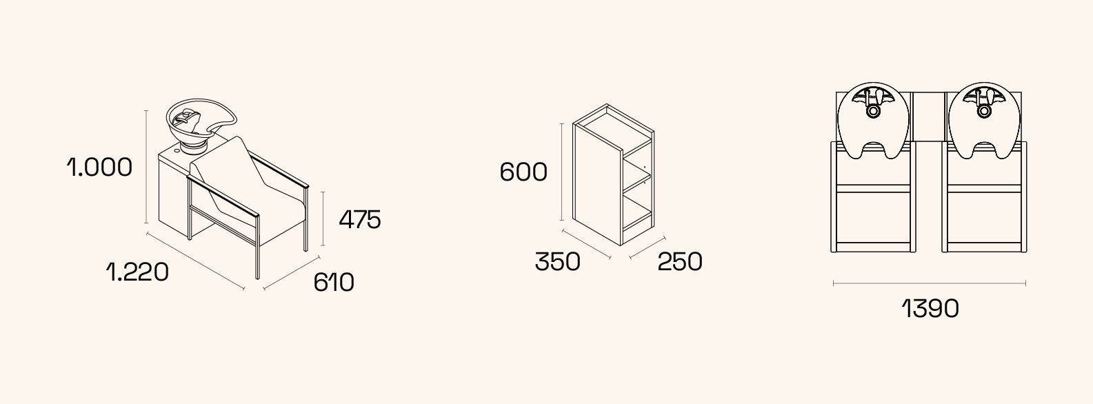Lavacabezas de la gama YUTO que mantiene la estética atemporal en línea con el sillón YU-T. Ofrece modularidad y es compatible con el reposapiés DOT.