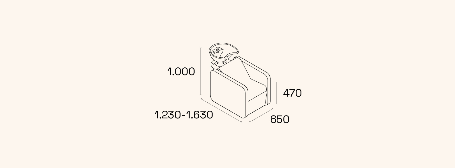Lavacabezas de diseño cuadrado y acogedor. Sus líneas limpias crean un efecto visual elegante y sofisticado en el salón. Permite añadir sistema de masaje opcional.