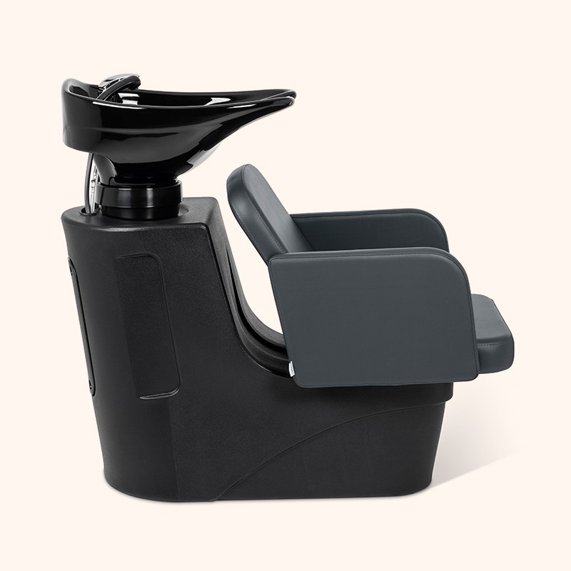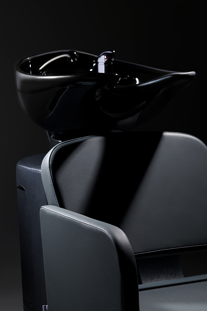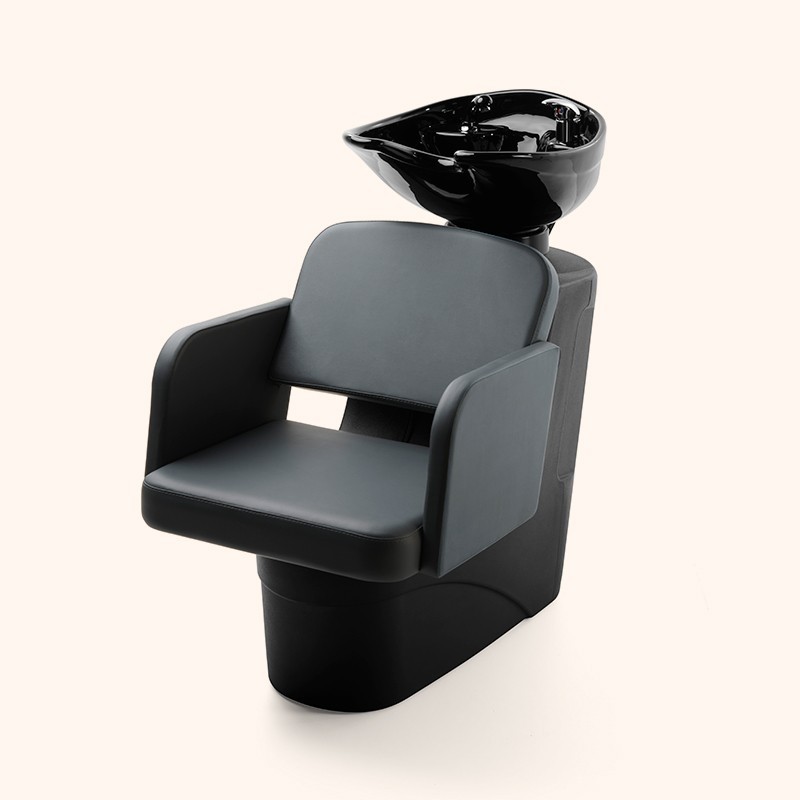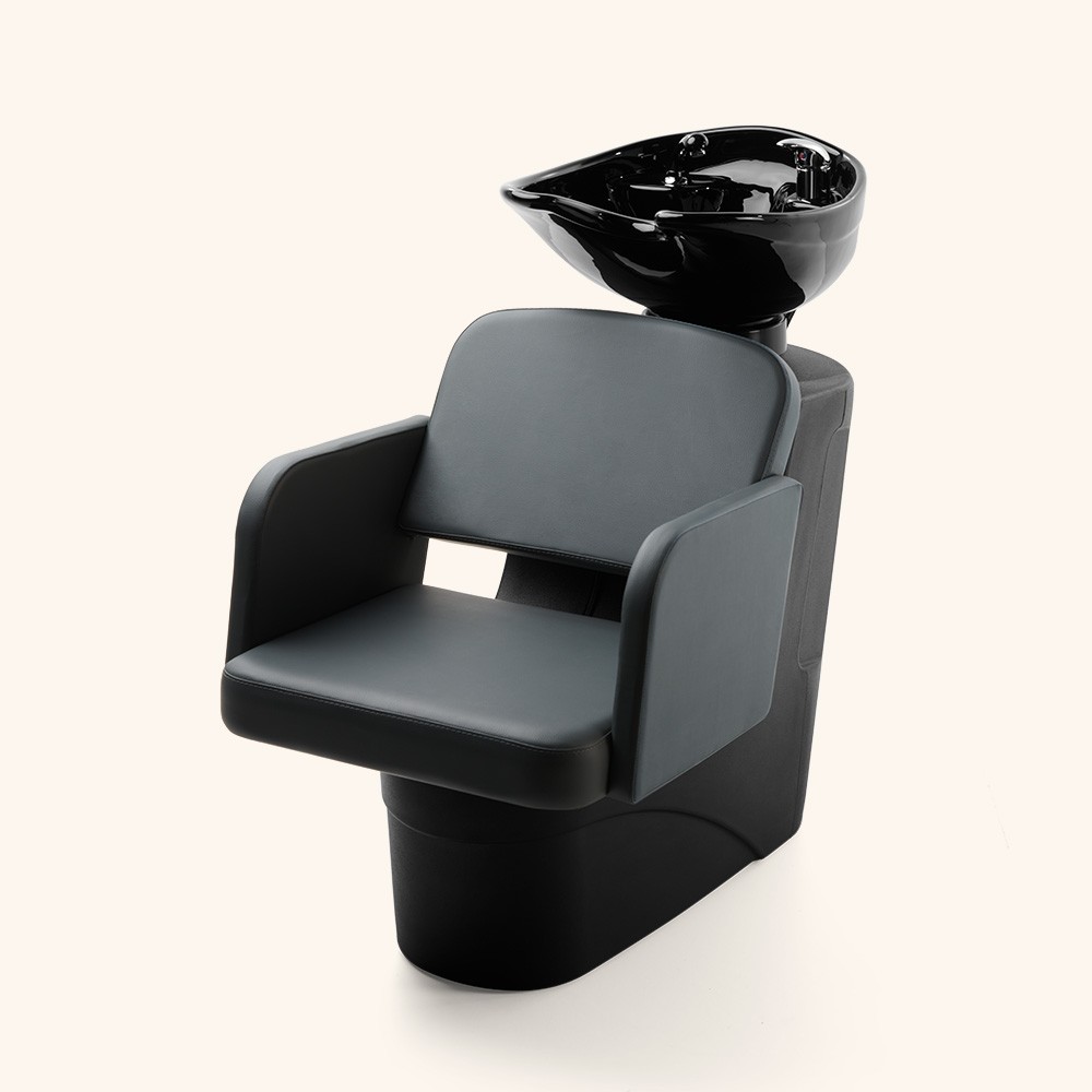 Lavacabezas de estilo contemporáneo con el sillón Davis. Aporta diseño robusto y garantiza la armonía estética. Ideal para salones de líneas modernas. Fácil de montar en línea con Link Unit KAI.