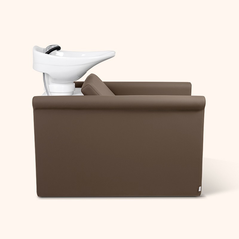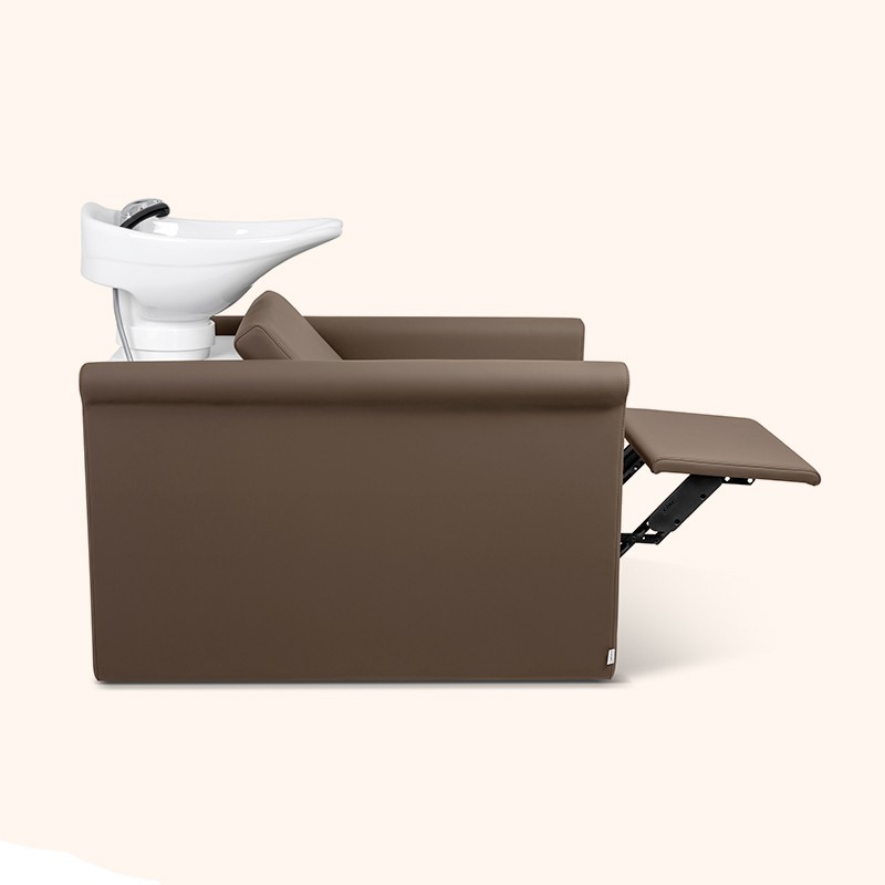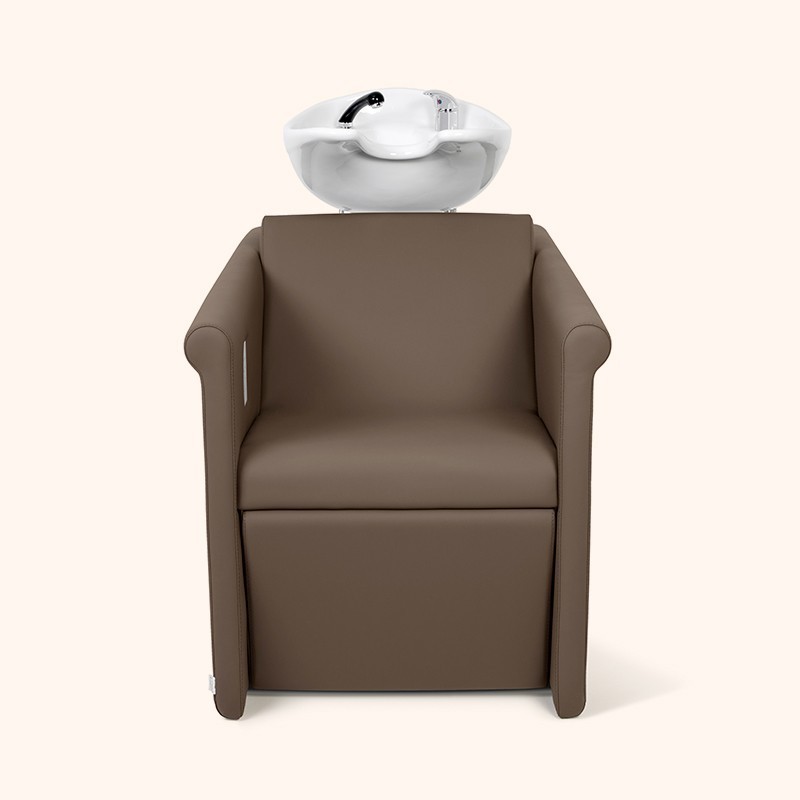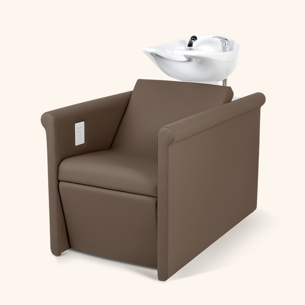 Lavacabezas de diseño envolvente y amplio en la línea de tendencia del sillón PICTA. Elige Bob para un salón donde el máximo confort es prioridad. Opción de masaje o reposapiés.