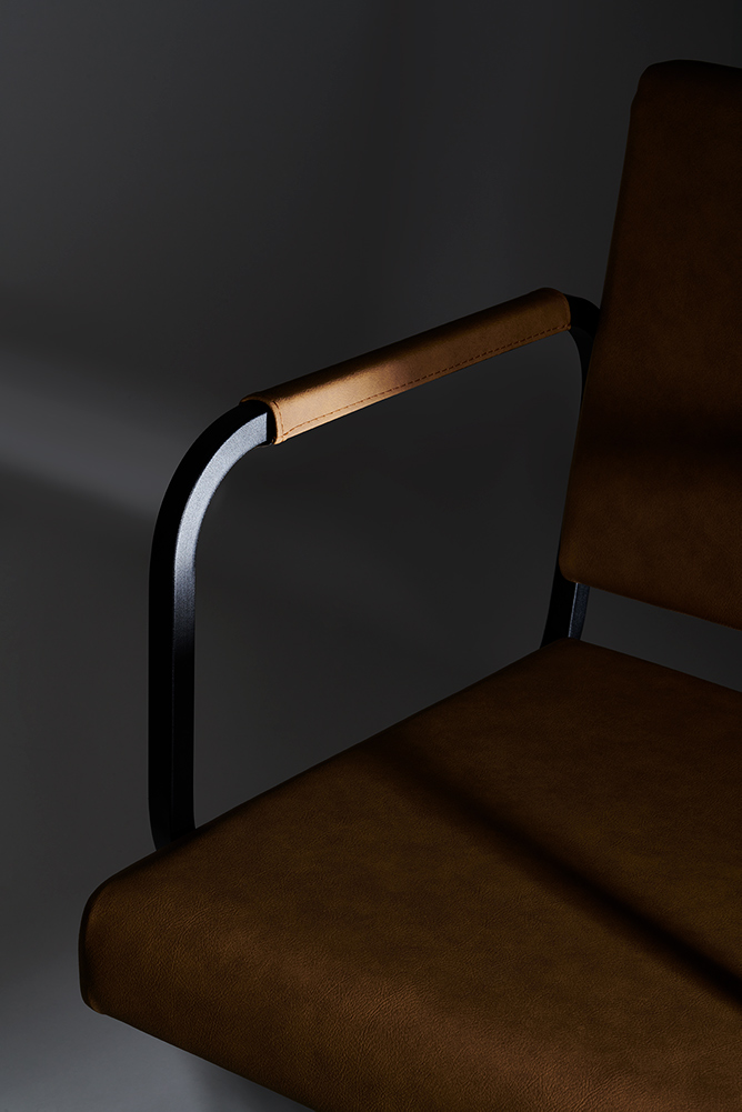 Versión retro del sillón YU. Líneas curvas y brazos tubulares que dan un toque vintage. Misma comodidad, diferente estilo para atmósferas cálidas.