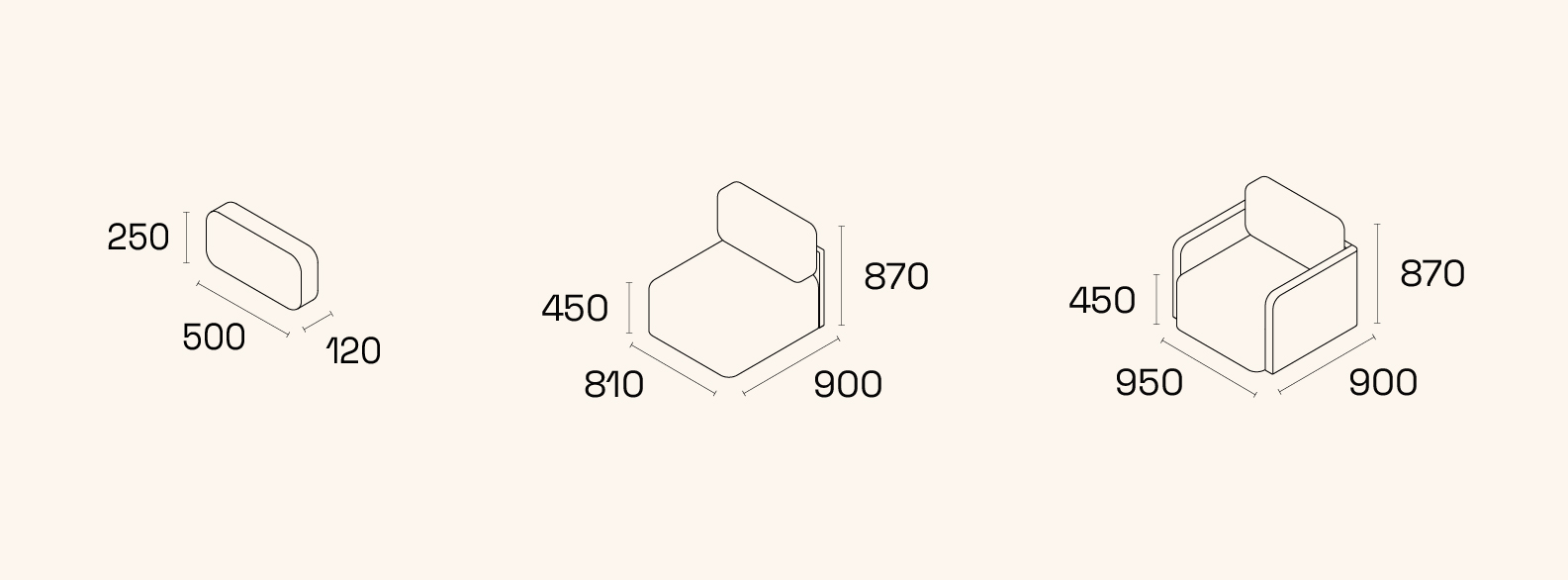 Módulo de asiento individual y máximo confort. Diseño robusto y profundo, la base ideal para crear configuraciones modulares únicas en salas de espera amplias.