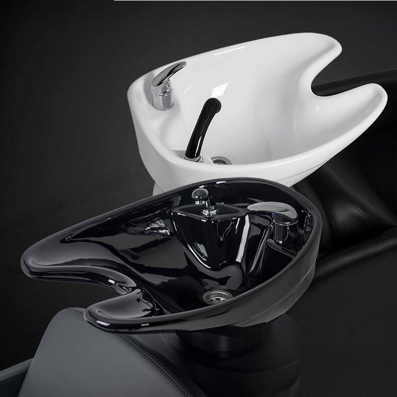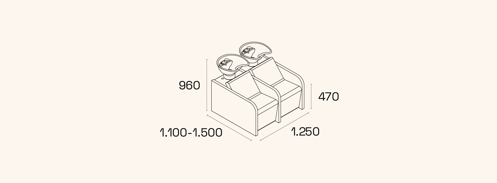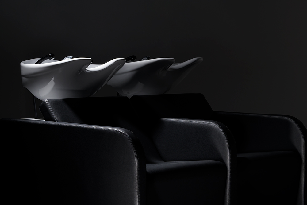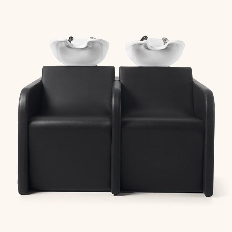 Lavatesta doppio della famiglia JIN. Offre due sedute avvolgenti e permette di aggiungere il sistema di massaggio opzionale. Una soluzione ideale per ottimizzare i tempi e il servizio premium.